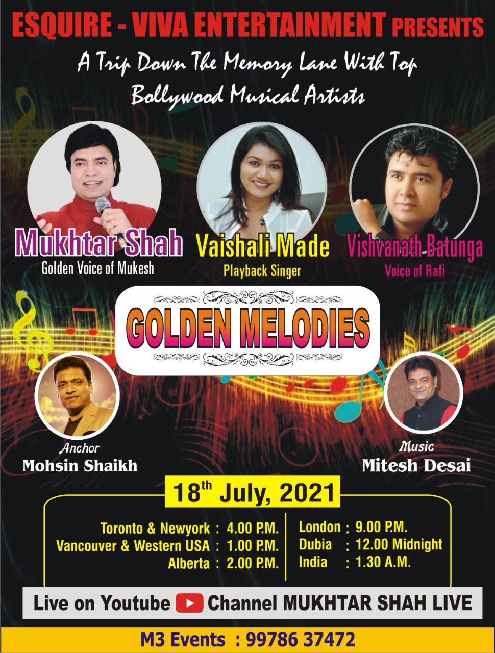 Altaf and Yasmin Kassam of Esquire Viva Entertainment are pleased to present a DHAMAKEADAR live Bollywood Virtual Music Concert Sunday, July 18th, 2021 Following Timings : Vancouver and Western USA 1 p.m. Alberta: 2 p.m. Toronto and New York: 4 p.m. London: 9 p.m. Dubai: 12 midnight